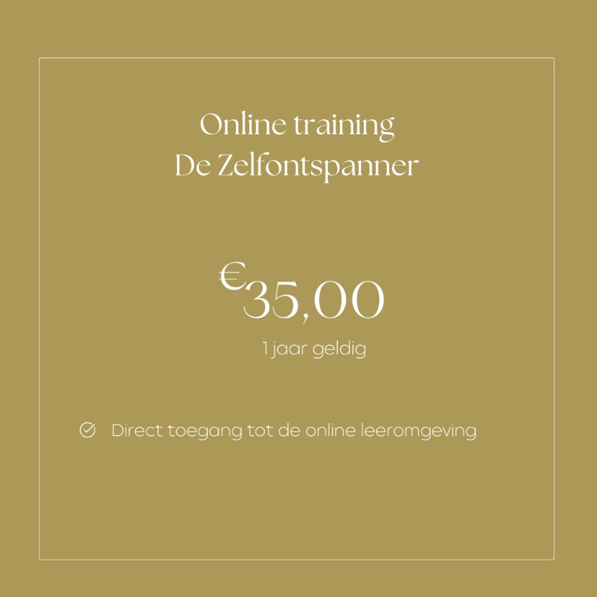 De Zelfontspanner is een super praktische training waarbij je door middel van heel veel lichaamsgerichte oefeningen direct rust en ontspanning gaat vinden in je lichaam, en in je hoofd. Het is een training voor als je nú rust wil ervaren.