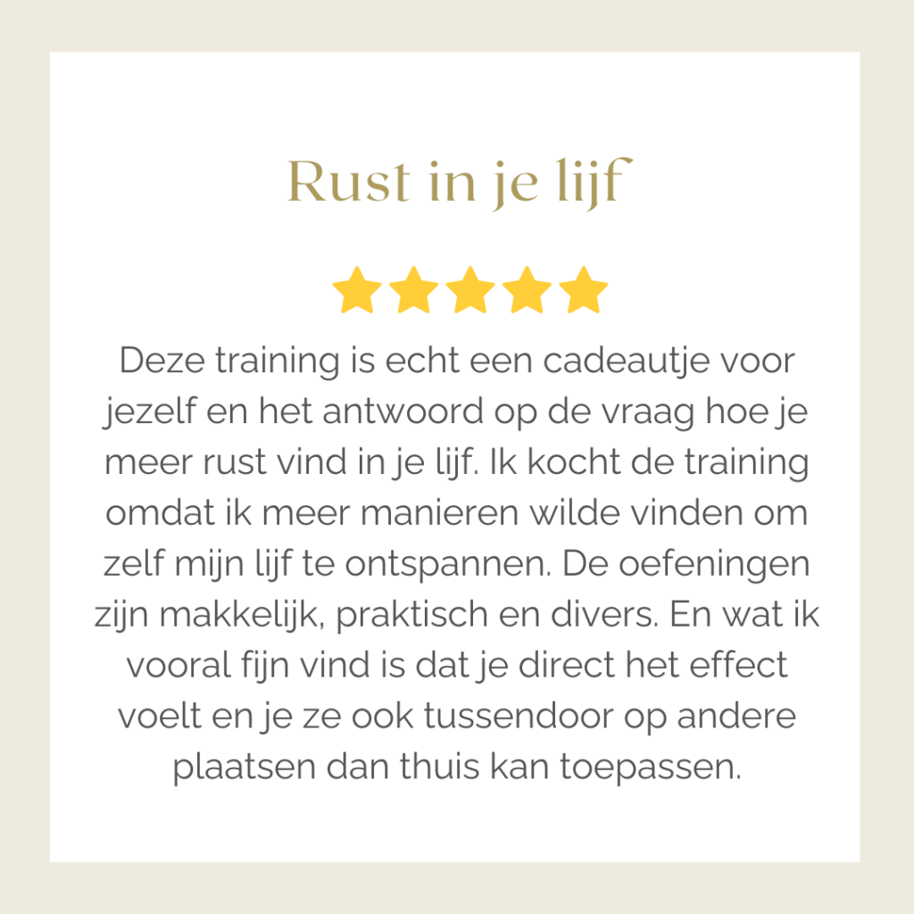 Ik heb echt moeten leren rusten. En moeten leren dat rust brengen in je lichaam en in je hoofd niet persé betekend dat je uren op de bank voor je uit ligt te staren. Dat niets doen niet hetzelfde is als diepe ontspanning ervaren. Hoe je dat doet leer ik je graag in deze training.