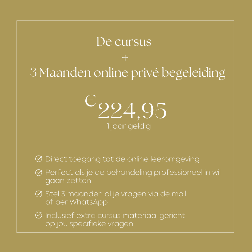 Als je de training volgt als professional heb je tot 3 maanden na aanschaf van de training de mogelijkheid om al je vragen te stellen via de mail of WhatsApp.