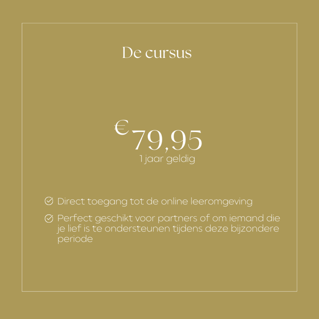 Je hebt één jaar de tijd om heel de training te doorlopen. Werk je als professional en doe je de training voor professionals? Dan heb je vanaf het moment van aanschaf 3 maanden de tijd om al je vragen te stellen via de mail of WhatsApp.